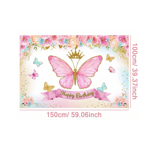 Pink Bow Balloons Flowers Daisy Happy Birthday Backdrop