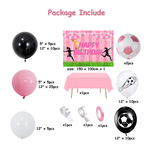 77pcs Pink Girl Football Birthday Decorations with Backdrop and Table Cover