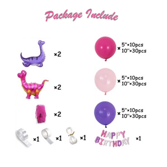 130pcs Pink Jurassic Dinosaur Theme Birthday Balloon Kit