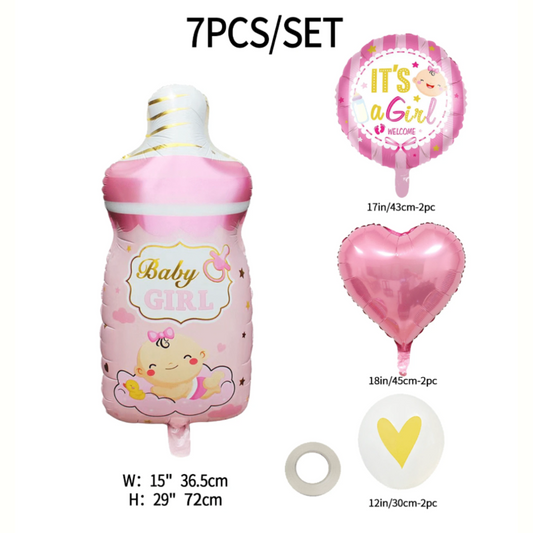 7pcs Gender Reveal Pink foil Balloon set