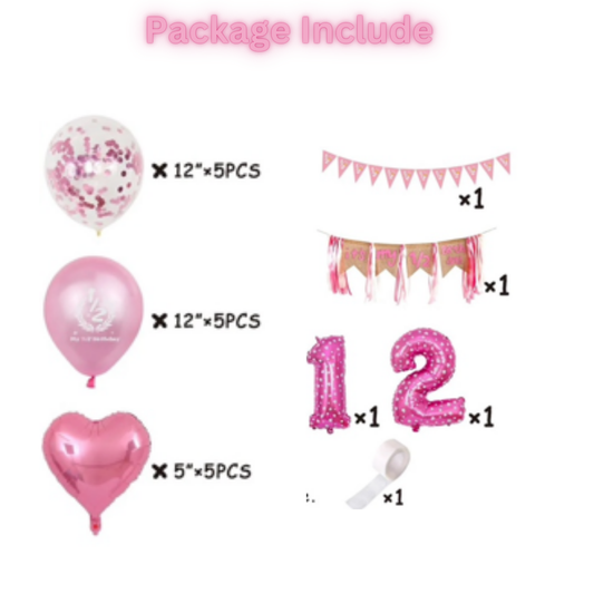 20pcs 1/2 Birthday Pink Decorations Kit