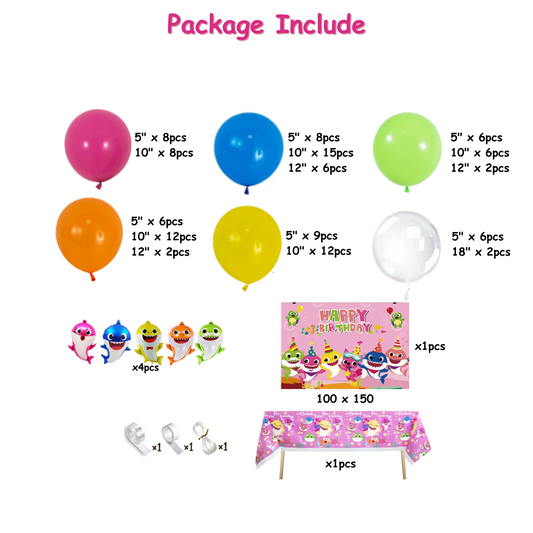 118pcs Pink Girl Baby Shark Balloons Garland Kit with Backdrop and Table Cover