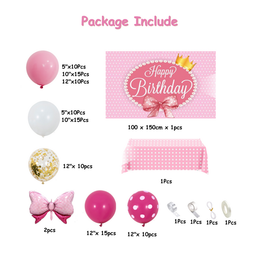 103pcs Pink Bow Balloon Kit with Backdrop and Table Cover