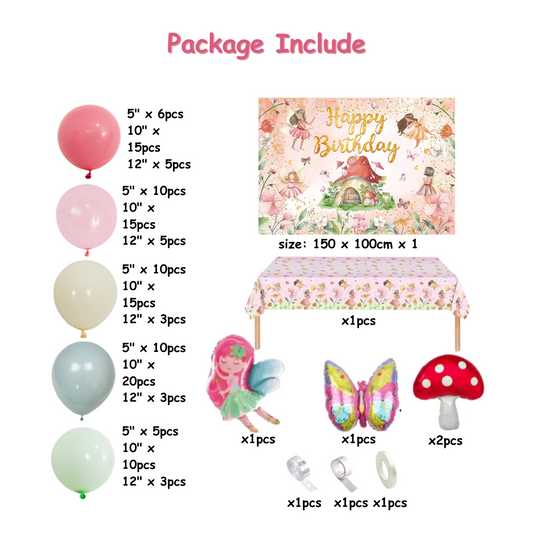 144pcs Pink Fairy Birthday Decorations with Backdrop and Table Cover