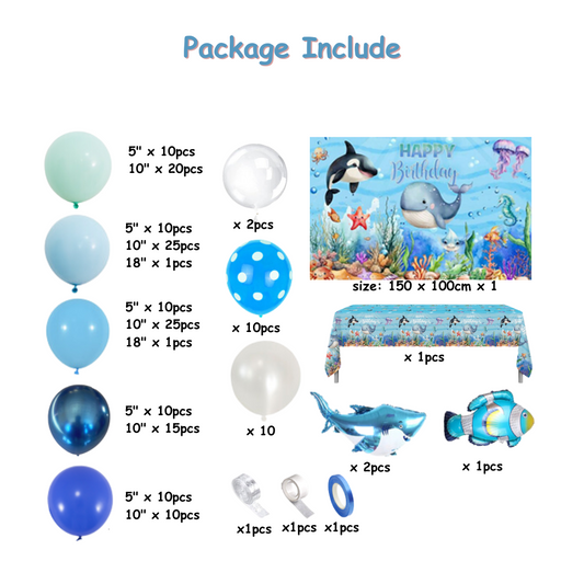 177pcs Ocean Theme Birthday Decoration Kit with Backdrop and Table Cover