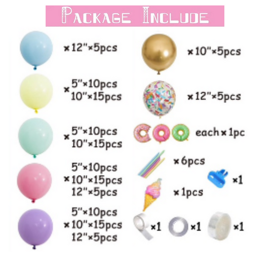 139pcs Pastel Colour Donut Candy Icecream Balloon Garland Arch Kit
