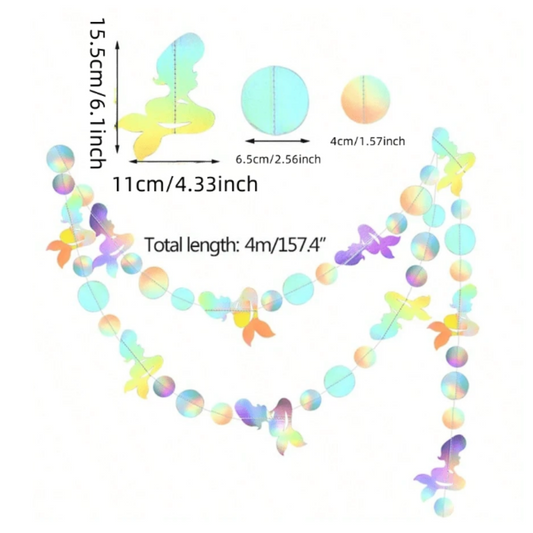4pcs Iridescent Mermaid Garland with Jellyfish, Seashell, Starfish & Pearl Ocean Theme Garland Hanging Banner