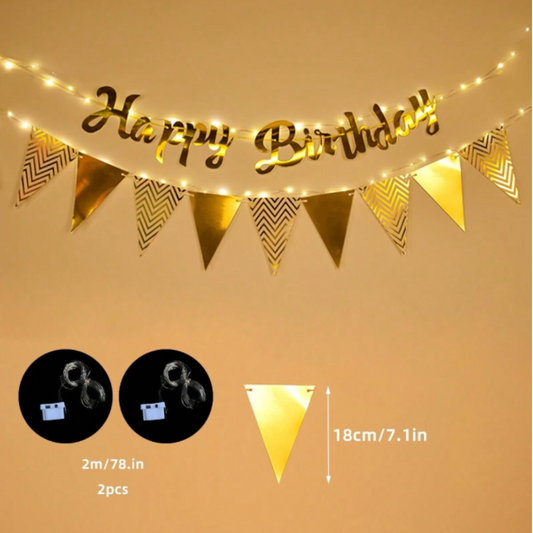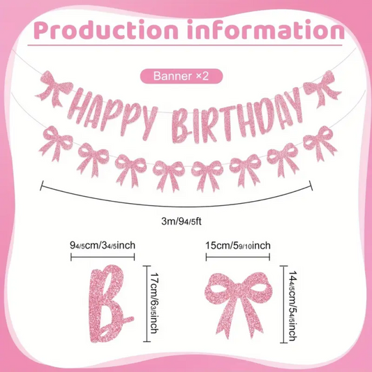 Pink Bow Happy Birthday Banner with 7pcs Swirls and Bunting