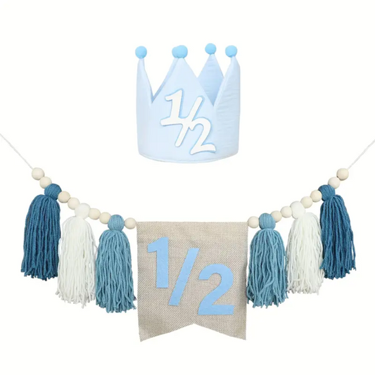 2pcs 1/2 Year Birthday Party Decor Kit with Blue Crown and Banner