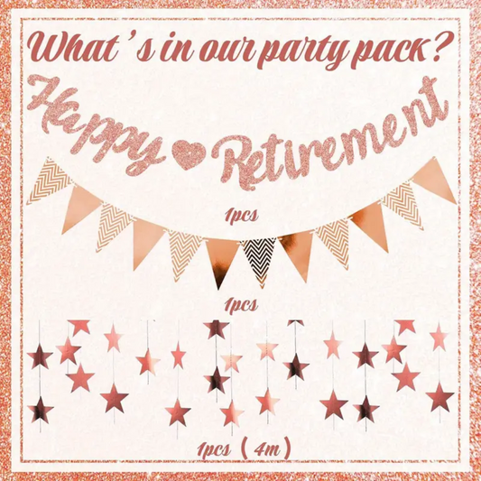 Happy Retirement Party Decorations, Banner, Triangle and Star Bunting