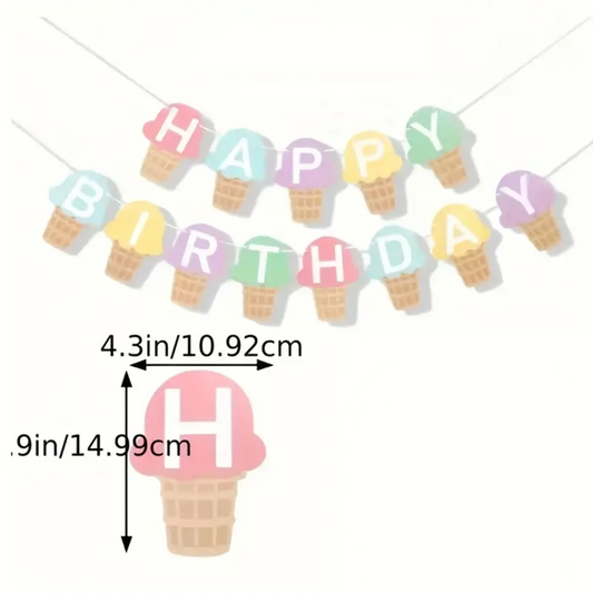 Ice Cream Theme Happy Birthday Banner