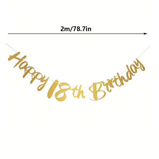 18th Happy Birthday Gold Paper Banner