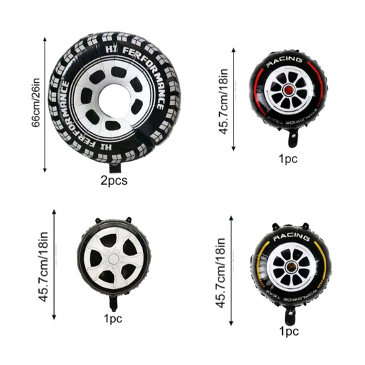 12pcs Checkered Balloon and Racing Car Tire Foil Balloon