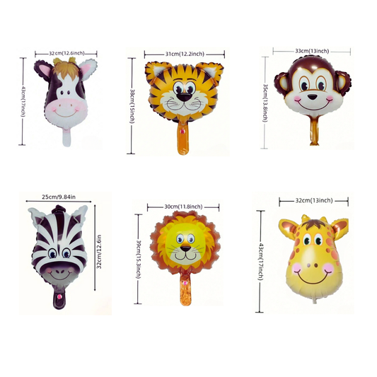6pcs Jungle Safari Animal Head Foil Balloons Set