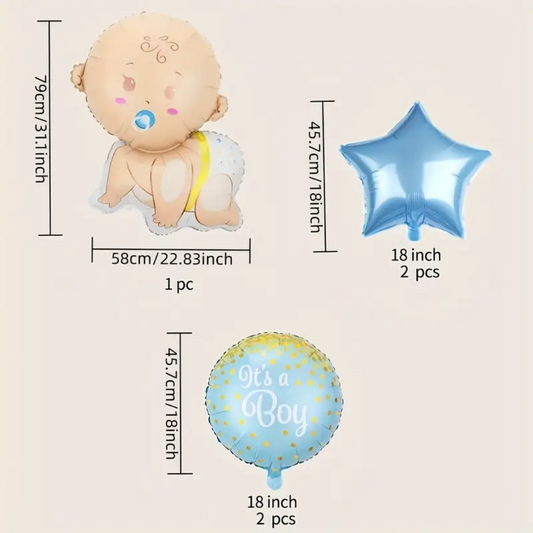 5pcs Gender Reveal Blue foil Balloon set