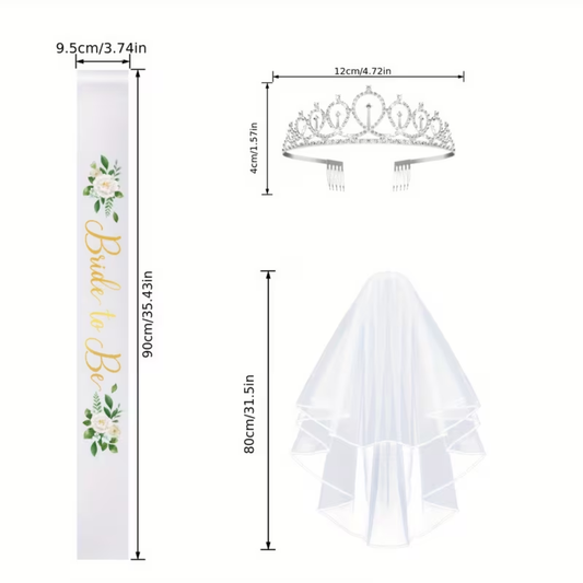 3pcs White and gold Bride to be set