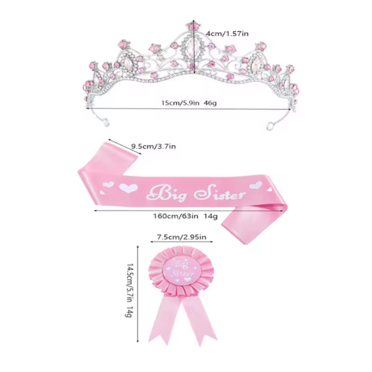 3pcs Big Sister Sash, Badge and Tiara Crown Set