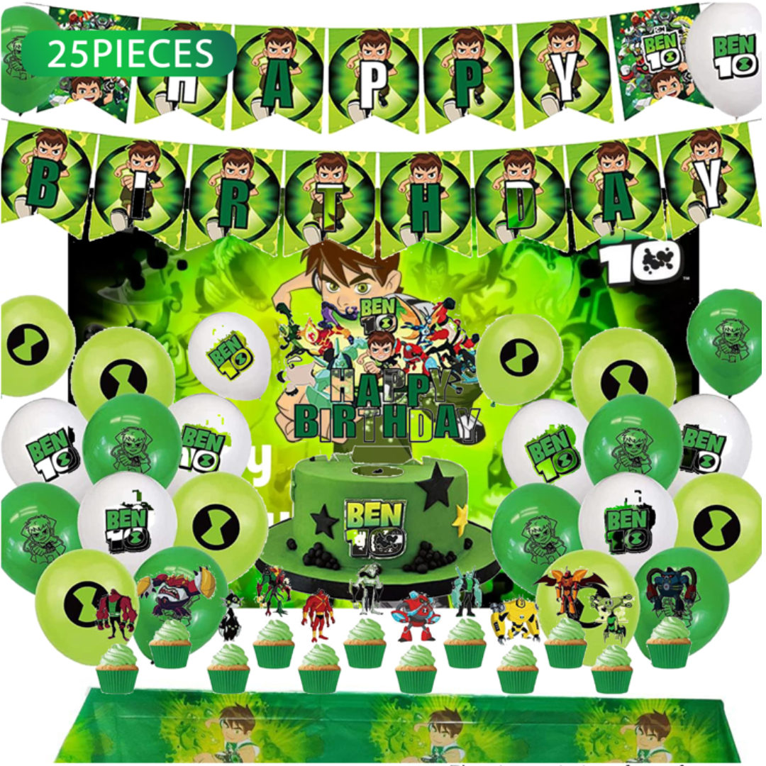 25pcs Ben 10 Birthday Decorations with Backdrop and Table Cover