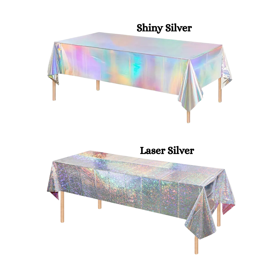 Iridescent Silver Disposable Party Table Cover